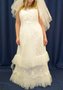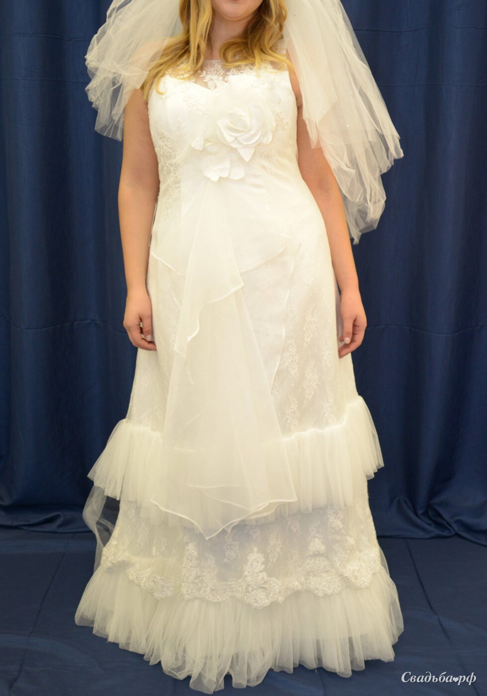 Милое платье с нежным кружевом и вырезом сердечком. Платье прекрасно садится и предоставляет полную свободу движения. Игривые воланы придают образу непосредственности. Платье подойдет беременным невестам. Вставка спереди прекрасно скроет животик. Идеальный вариант для стилизованной свадьбы! Размер 44-48.