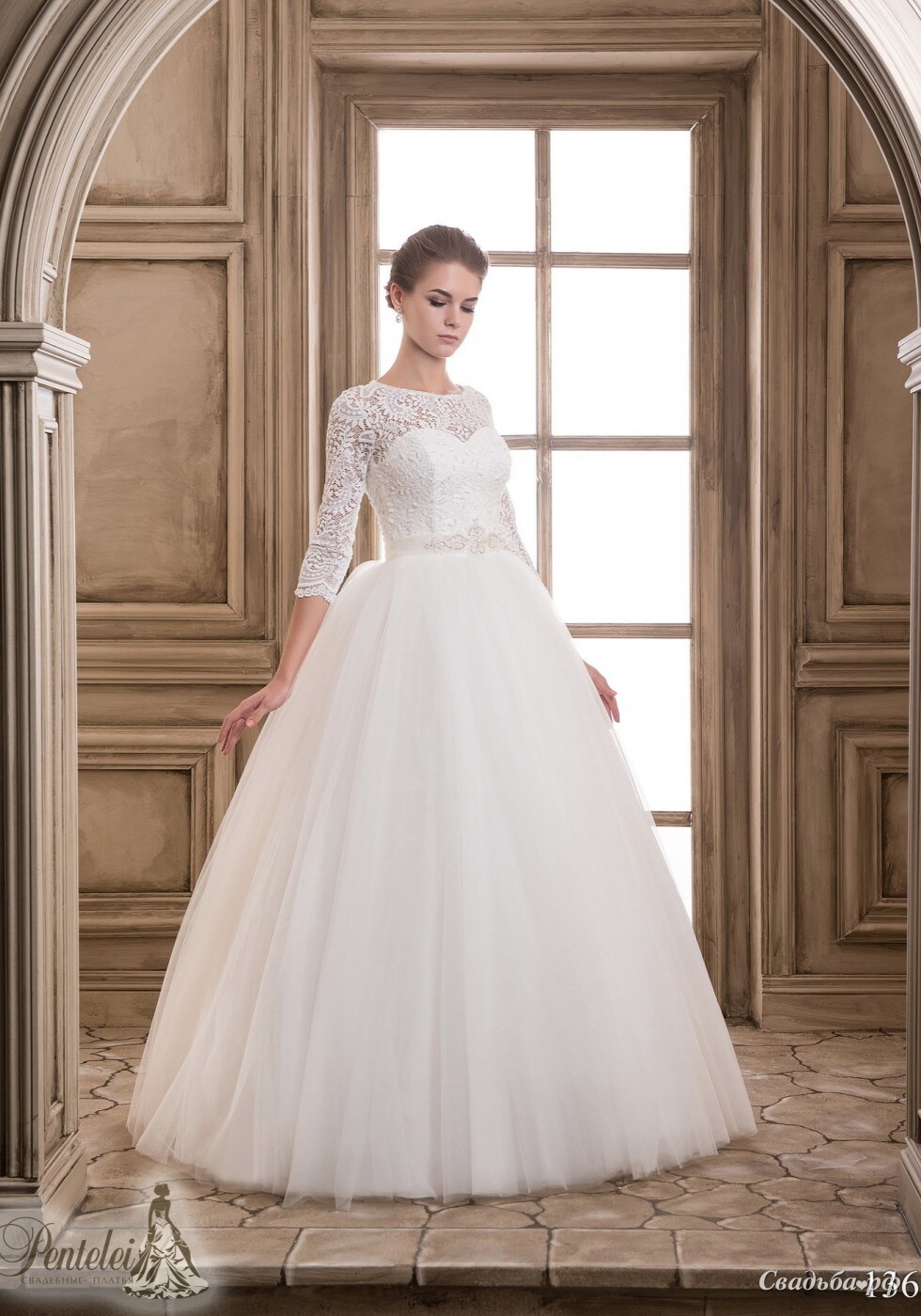 Пышное свадебное платье с длинными рукавами. Корсет кружевной, платье подходит будущим мамам. Легкое и воздушное, почти невесомое. В наличии платье больших размеров (от 50 до 56)