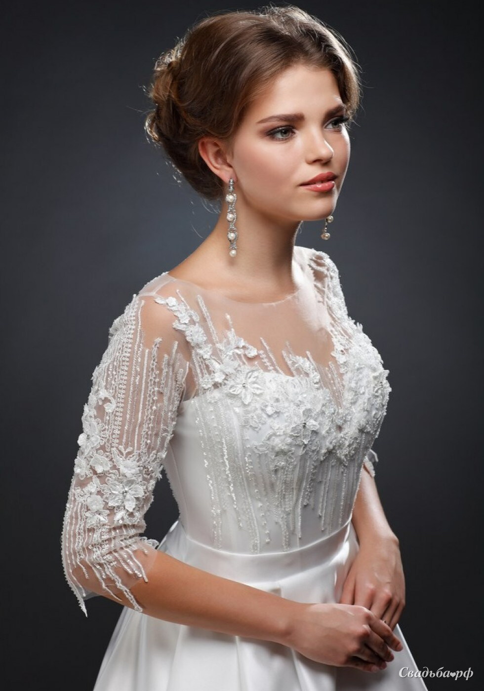 Шикарное свадебное платье с рукавами и неповторимым кружевом ручной работы на корсете.