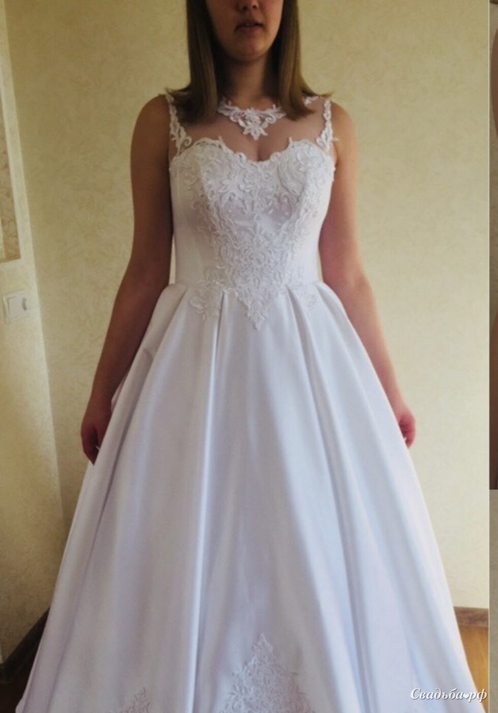 Невероятно нежное и красивое атласное свадебное платье в кружевом на корсете, которое расшито прозрачными пайетками.