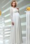 белое свадебное платье для беременных невест с длинными кружевными рукавами.