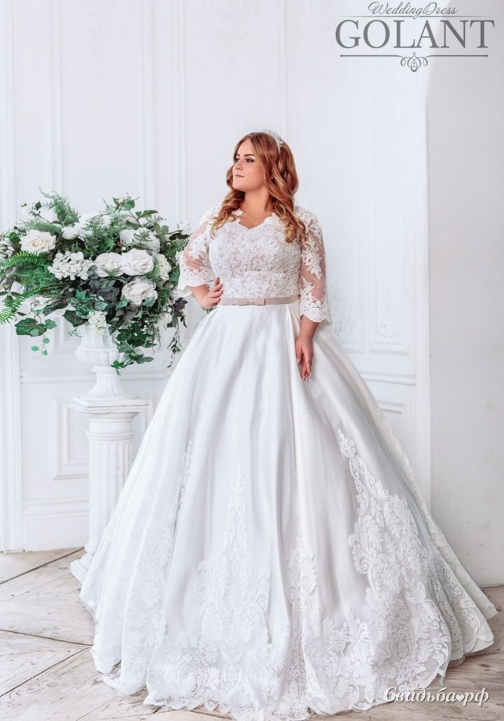 Роскошное благородное свадебное платье для полных невест, платье большого размера, свадебное платье с кружевными рукавами. Кружево расшито жемчугом.