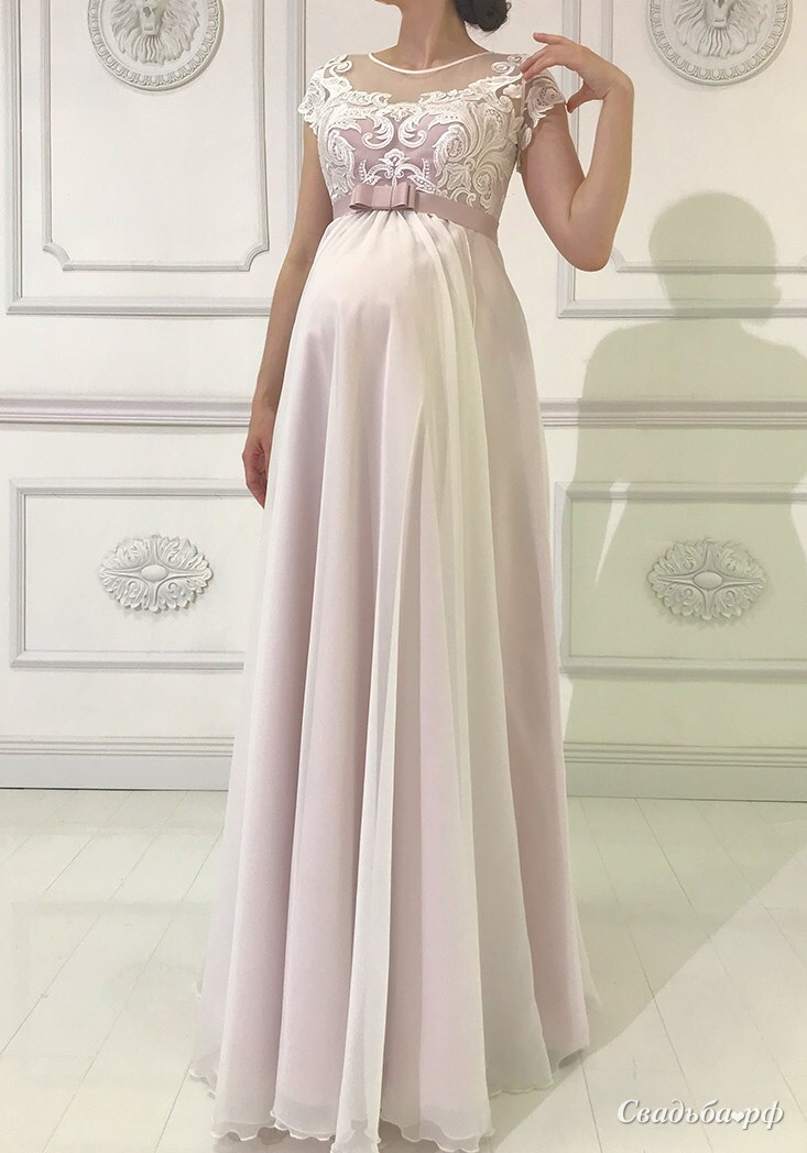 Свадебное платье в греческом стиле для беременных невест. Очень нежное и легкое. Струящаяся ткань, нежное кружево и небольшие рукавчики. Комфортное и стильное свадебное платье "для двоих".