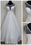 Атласное свадебное платье с глубоким декольте. Кружевная сетка расшита пайетками. Юбка с карманами.