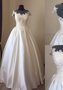 Атласное свадебное платье с кружевным корсетом, который расшит бисером и очень красиво мерцает при попадании света. Спинка - корсет и пуговки. Эффект спадающих плеч. Юбка с карманами