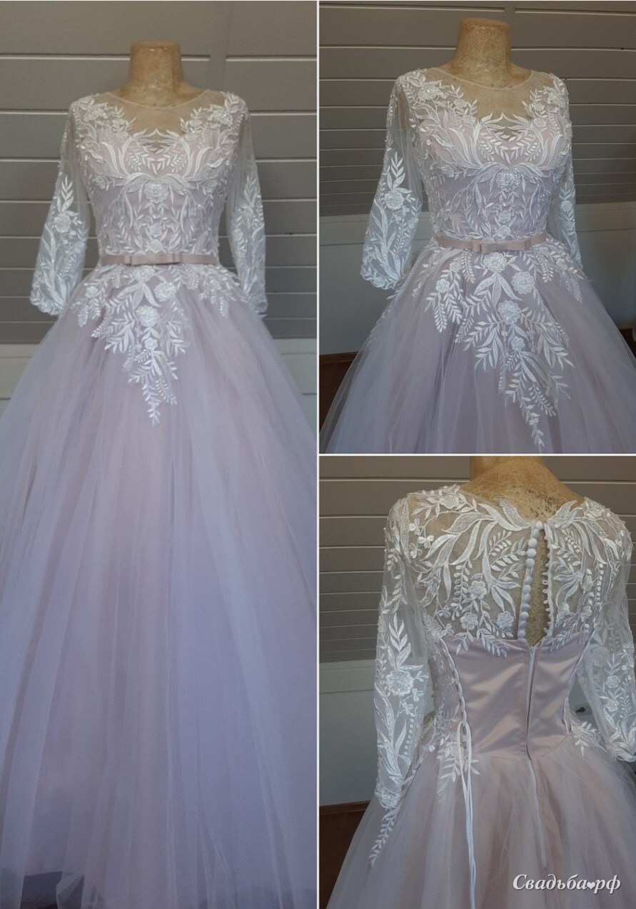 Закрытое свадебное платье для полных большого размера. Кружево расшито вручную бисером и кристаллами. Спинка корсет и пуговки.