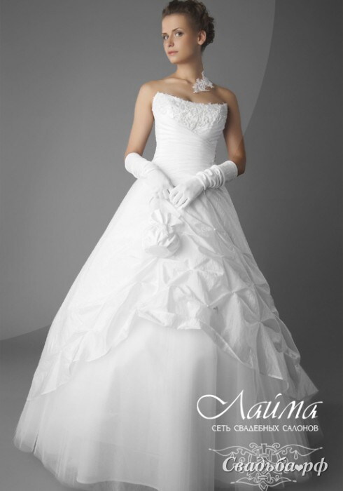Романтичное и элегантное свадебное платье классического покроя чудесно украсит любую невесту! Плотный корсет, украшенный по линии лифа вышивкой и бисером, подчеркнет стройность Вашего утонченного силуэта. А двухслойная юбка с нежным, полупрозрачным нижним слоем, добавляет нотки элегантности и чувственности.