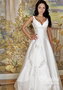 Свадебное платье, А-силуэта, расшитое под грудью стеклярусом. Лиф на бретелях, с глубоким декольте.