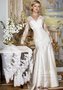 Белоснежное свадебное платье с закрытыми плечами и длинными кружевными рукавами. Атласный пояс-лента, выгодно расположившийся под самой линией груди, юбка, начинающаяся от бёдер – это платье предназначено демонстрировать все прелести фигуры его обладательницы.