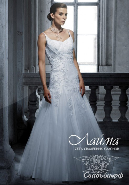 Свадебное платье А-силуэта с расклешенной от бедра юбкой. Корсет изящно расшит в области талии и красиво выделяет грудь. Воздушность юбки привносит в образ легкости. Этот наряд сделает фигуру изящной и стройной.