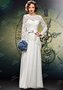 Еще один подарок ценительницам стиля «ретро» - эта закрытая модель из благородного кружева с длинными рукавами и летящей шифоновой юбкой в пол. Модная деталь – кружевная баска – превращает платье в редкий бриллиант под стать сияющим стразам на его атласном поясе.