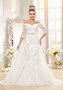 Гости будут очарованы вашим появлением в этом роскошном наряде. Изящная линия декольте, открытые плечи и кружево по всей длине – что может быть прекраснее! Добавьте к платью пристяжной шлейф с ярким акцентом на талии, и ваш образ станет незабываемым.