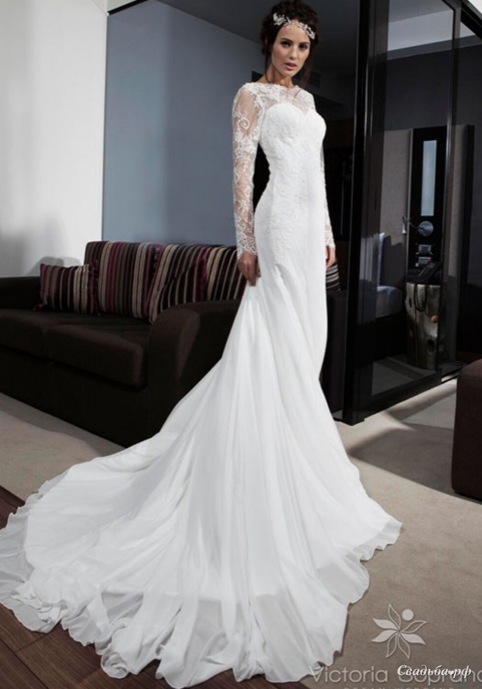 Свадебное платье выполнено из великолепного французского кружева и роскошного шифона.