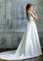 Роскошное атласное платье А-Силуэта с длинным шлейфом и невероятно красивой кружевной спинкой.