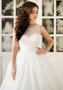 Свадебное платье с пышной юбкой и нежным лифом, украшенным множеством жемчужинок