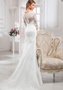 Свадебное платье силуэта рыбка с рукавчиком 3/4 и изящной кружевной спинкой
