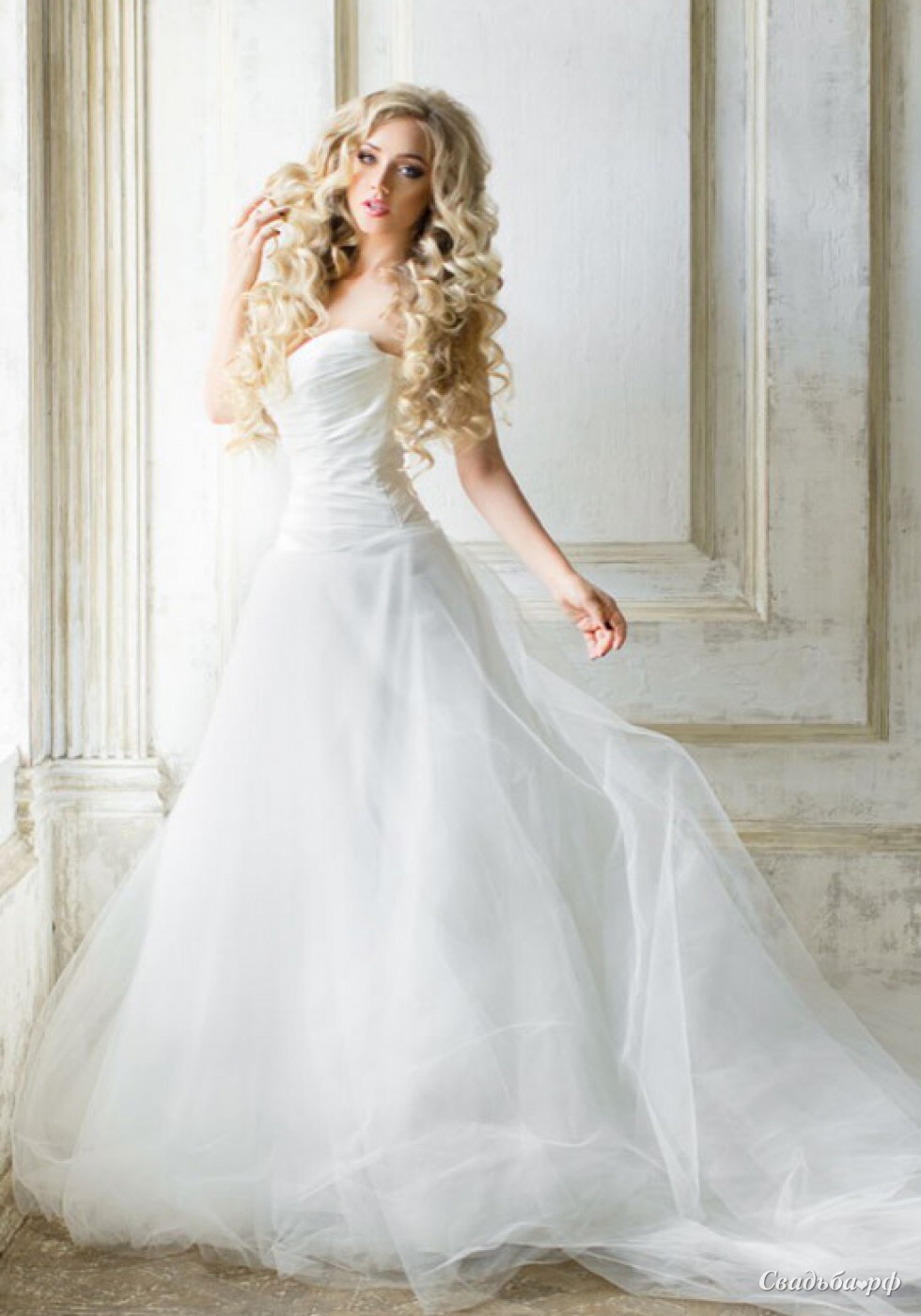 Свадебное платье А-Силуэта с воздушной юбкой. Лиф выполнен их роскошного атласа