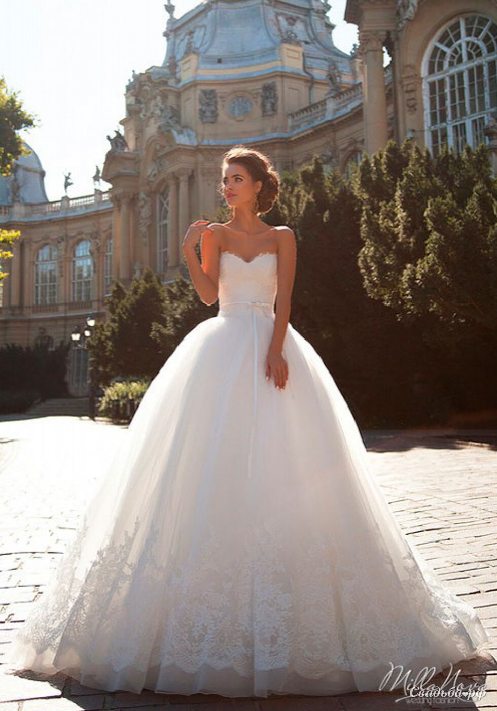 Великолепное пышное свадебное платье, выполненное из роскошного, неповторимого французского кружева