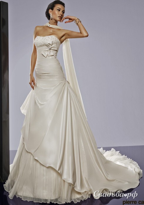 Цена по акции: 7970 руб.----------Потрясающее свадебное платье французского дизайнера Pierre Сardin поможет создать нежный образ современной невесты. Заниженный корсет с открытой зоной декольте украшен кокетливым бантом под грудью. Пышная юбка из нескольких видов ткани дополнена тончайшими воланами. Роскошный шлейф гармонично дополняет этот изысканный наряд.