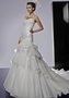 Если вы хотите почувствовать себя настоящей принцессой в самый торжественный день вашей жизни, то это итальянское свадебное платье от знаменитого дизайнера Pierre Cardin придётся вам по душе. Заниженный корсет с открытой зоной декольте и тончайшими бретелями выгодно подчёркивает соблазнительные изгибы фигуры. Пышная юбка с объёмными воланами дополнена шлейфом.