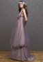Оригинальное свадебное платье французского производства создано для самых дерзких и эффектных модниц. Верхняя часть наряда с открытой зоной декольте и завышенной талией дополнена объёмными цветами и изящными бретелями. Длинная юбка с небольшим шлейфом драпирована полупрозрачной тканью и декорирована бутонами ручной работы.