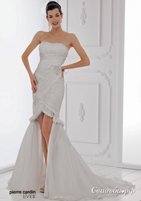Цена по акции: 6300 руб.----------Свадебное платье-трансформер от знаменитого французского бренда Pierre Cardin придётся по душе самым стильным и притязательным модницам. Облегающий наряд с оригинальной драпировкой выгодно подчёркивает все достоинства фигуры и мягко скрывает её недостатки. Длинный шлейф легко отстёгивается и открывает миру прекрасные ножки невесты.