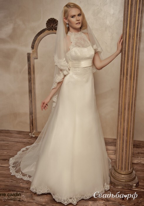 Цена по акции: 6825 руб.----------Потрясающее свадебное платье Pierre Cardin. Зона декольте, корсет и спинка кокетливо прикрыты тончайшим кружевом с изумительно красивыми цветочными узорами. Соблазнительный разрез по центру спины завершается удобной застёжкой-молнией. Широкий атласный пояс эффектно выделяет линию талии. Нижний край юбки со шлейфом также отделан кружевом.