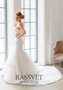Сочетание узкого корсета и великолепной пышной юбки выделяет эту модель из прочих платьев в стиле русалка. В дополнение к яркому образу добавлен длинный шлейф, который очень пригодится на свадебной фотосессии.