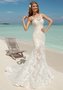 Силуэтное кружевное платье с прозрачной юбкой, плавно переходящей в шлейф.