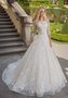 А-силуэт с кружевной отделкой и длинным шлейфом