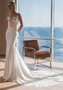 Свадебное платье силуэта рыбка подчеркивает фигуру. Шлейф платья декорирован кружевом. Тонкие бретели смотрятся очень легко и элегантно.