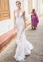 Облегающего свадебного платья «русалка» подчеркнуто эксцентричной объемной отделкой из перьев. V-образный вырез, обрамленный полупрозрачной тканью. Спинка платья открыта.