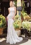 Американская пройма в свадебном платье придает образу необычности. По всей длине свадебное платье покрыто тонким кружевом с деликатным узором. Спинка платья открыта.