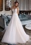 Пышное свадебное платье пудрового цвета со шлейфом. Корсет покрыт 3D аппликациями в виде мелких цветов и жемчужинками. Многослойная юбка из фатина добавляет образу нежности.