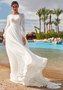 Закрытое свадебное платье прямого кроя. Лиф с круглой проймой декорирован кружевом. Длинные воздушные рукава на манжетах украшены ажурными узорами.