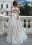 Свадебное платье А-силуэта бежевого оттенка с нежным декором. Плечики съемные.