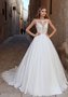 Пышное свадебное платье с кружевным лифом и легкой фатиновой юбкой. Спинка украшена кружевом и нежными пуговицами.