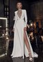 Стильное свадебное платье с открытой спиной и высоким разрезом. Выполнено из атласной ткани.