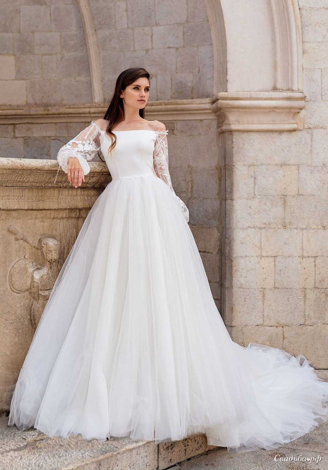 Стильное свадебное платье с пышным рукавом. Выполнено в стилистике минимализма.