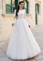 Пышное свадебное платье с длинным рукавом и полностью открытой спинкой. Благодаря стрейч-атласной ткани модель полностью облегает руки невесты.