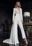 Стильный брючный костюм со съемным кейпом. Лиф расшит кружевом.