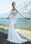 Свадебное платье силуэта русалка с длинными рукавами. Лиф с квадратным вырезом подчеркивает зону декольте, а гладкая юбка облегает бедра и расширяется, переходя в шлейф.