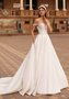 Пышное элегантное свадебное платье со спущенными плечиками, которые украшает россыпь из камней.