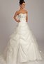 Великолепное свадебное платье А-силуэта. Классический открытый лиф украшен цветочными мотивами и хорошо держит грудь. Такие же декоративные элементы присутствуют и на юбке. Легкий верхний слой пышной юбки собран в симметричные драпировки, придающие платью нежный, очаровательный внешний вид и неповторимость образа.