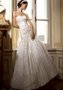Интересное платье, представленное в кремовом цвете, привлекает своей оригинальностью и непосредственностью. Горизонтальная драпировка, украшающая лиф, изумительная вышивка бисером и бусинами, несомненно, делают платье необычным и привлекательным. Лиф доходит до середины бедра. Пышная юбка из мягкого материала, волны складок добавляют изюминку свадебному наряду. Невеста, надевшая данную модель свадебного платья, почувствует себя королевой.