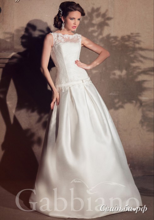 Лаконичная модель от известного бренда Gabbiano придётся по вкусу настоящей леди. Полупрозрачная вставка на груди и пикантно оголённая спинка придают образу особый шарм. Линию бёдер подчёркивает тонкая лента с миниатюрным бантом. Пышная юбка оригинального покроя доходит до пола. Это красивое свадебное платье представлено в наличии.