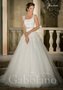 Роскошный наряд А-образного силуэта поможет создать образ современной принцессы. Скромная зона декольте обрамлена ажурными бретелями. Кружевной декор на груди зрительно увеличивает бюст. Талия украшена атласным поясом. Пышная юбка со шлейфом придаёт образу торжественность. Это красивое свадебное платье представлено в наличии.