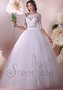 Романтичное свадебное платье поможет создать образ современной принцессы. Кружевные рукава и вставка на груди гармонично сочетаются с пикантно оголённой спинкой. Талия украшена сверкающей вышивкой. Пышная юбка из полупрозрачной ткани смотрится торжественно и воздушно.