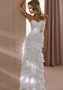 Легкое платье в греческом стиле. Фигурный лиф украшен мягкой драпировкой. Тонкие бретели эффектно подчёркивают изящество линии плеч. Широкий атласный пояс с роскошной брошью прекрасно выделяет талию. Юбка состоит из многочисленных ярусов лёгких оборок, каскадом струящихся вдоль фигуры и делающих образ ещё более нежным и романтичным.