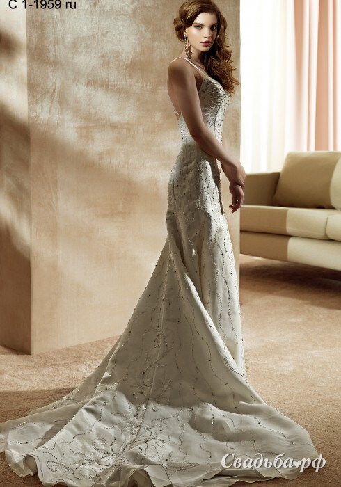 Романтичное свадебное платье с открытой спиной и элегантным шлейфом. По всей длине, начиная от соблазнительного фигурного лифа и заканчивая кончиком шлейфа, модель расшита сверкающим бисером и бусинами. Тонкие бретели эффектно подчёркивают изящество линии плеч и перекрещиваются на спине. Остался размер 44, новая цена 12.000 руб.